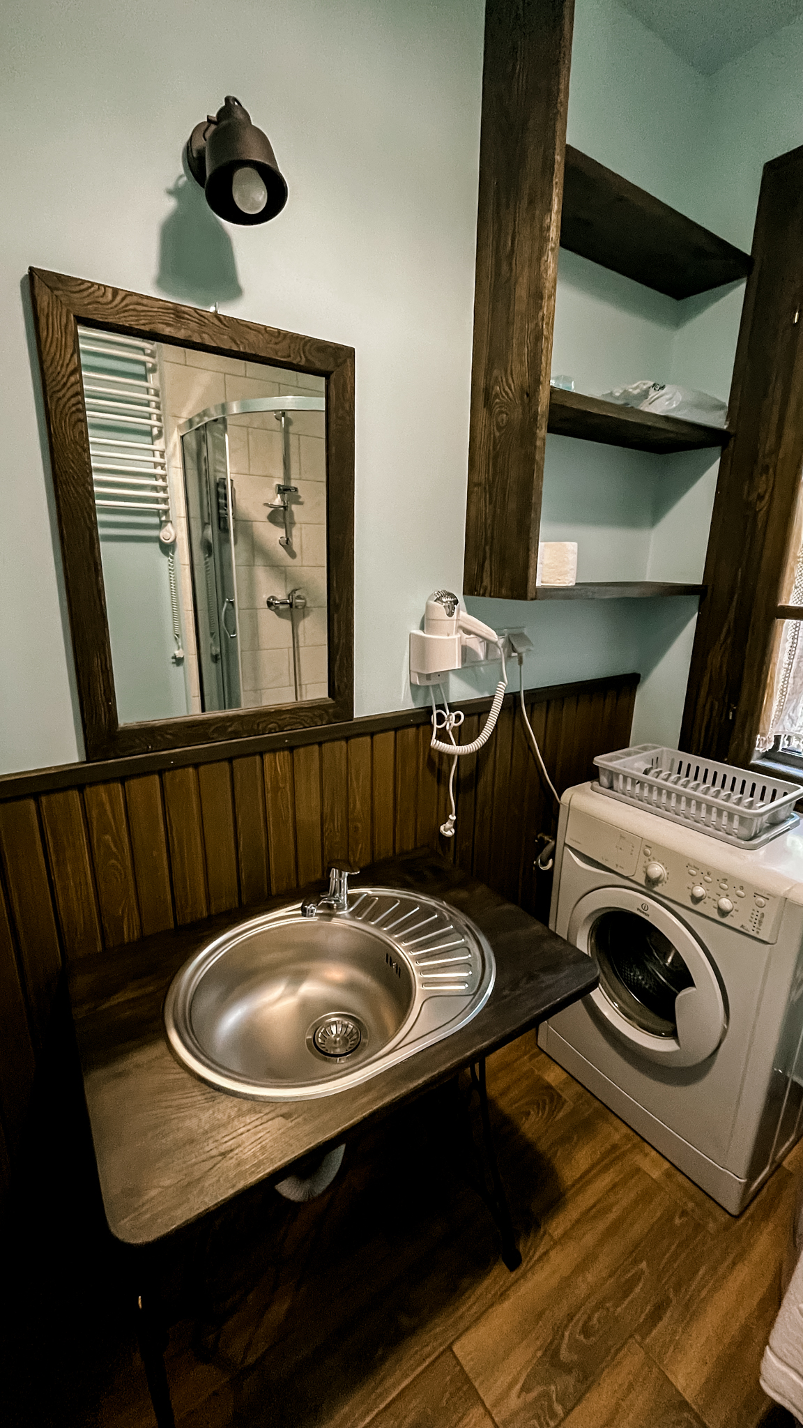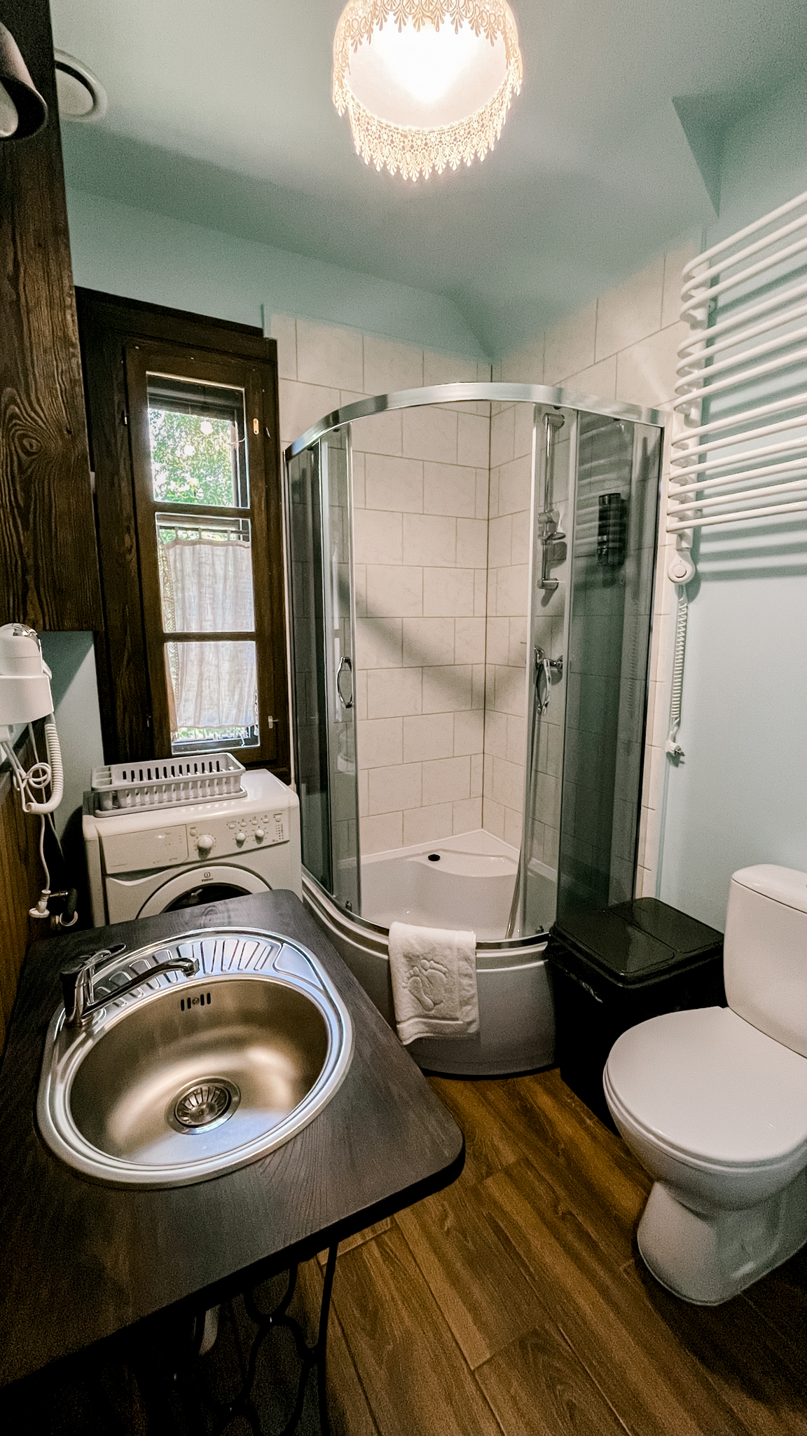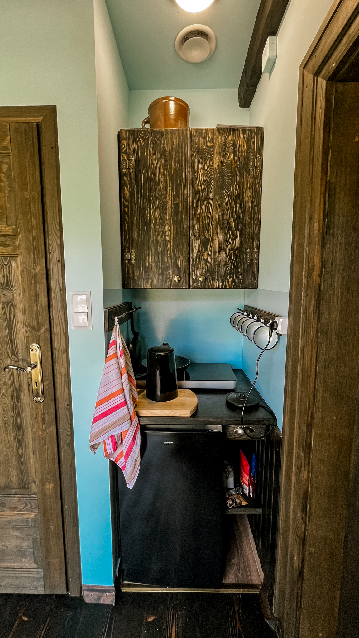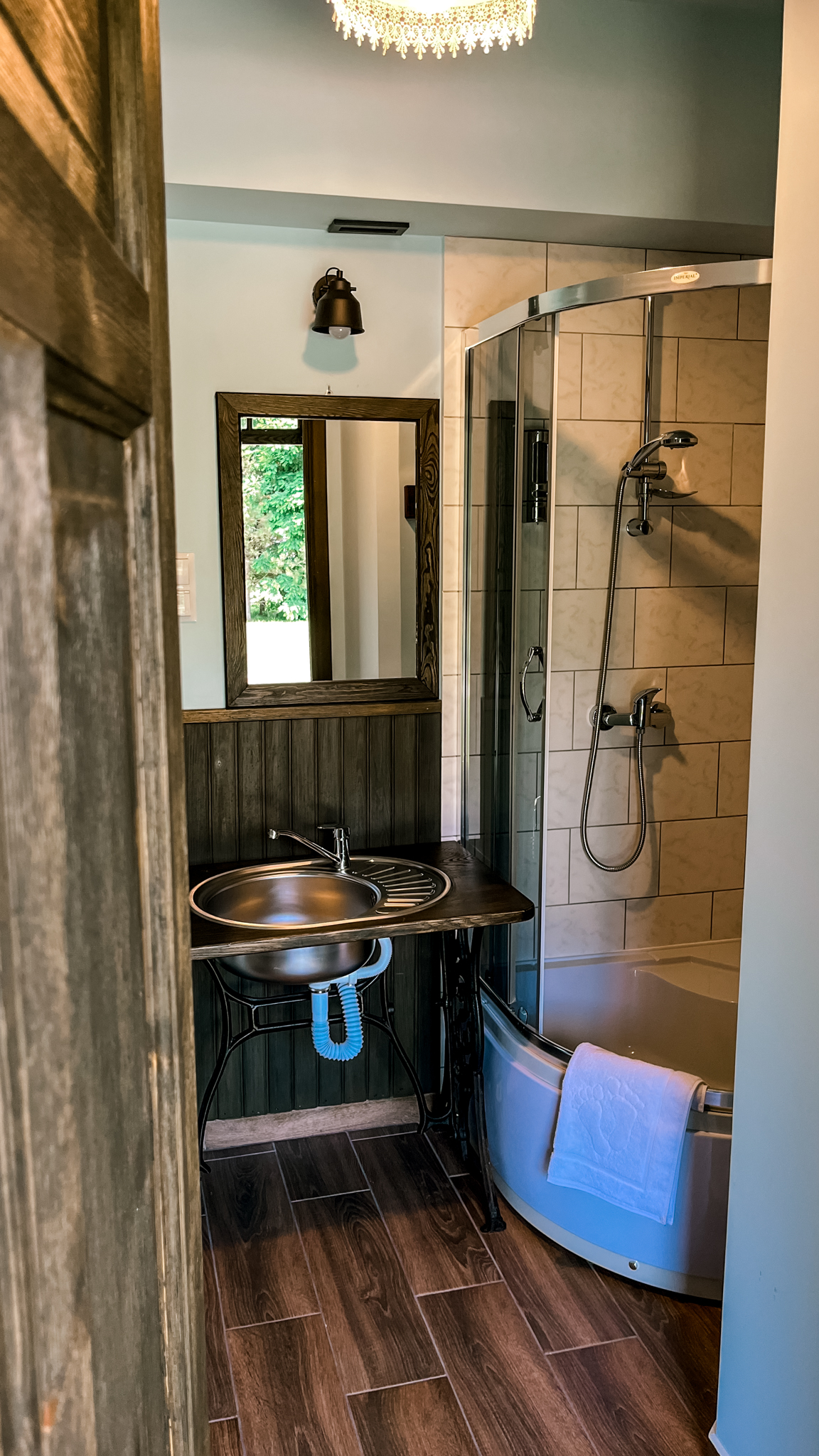Bardzo udane połączenie nowoczesności i tradycji w postaci komfortowego pokoju z nowoczesnymi udogodnieniami z wystrojem starej chaty. Pięknie i przyjemnie.